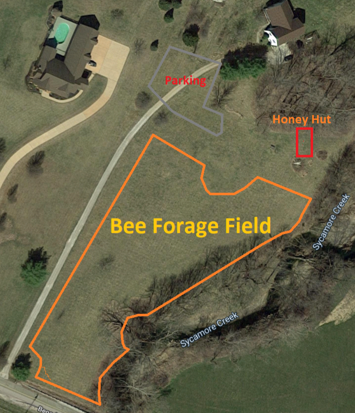 Please stay on the lower portion of the property between the Honey Hut and the Bee Forage Field.